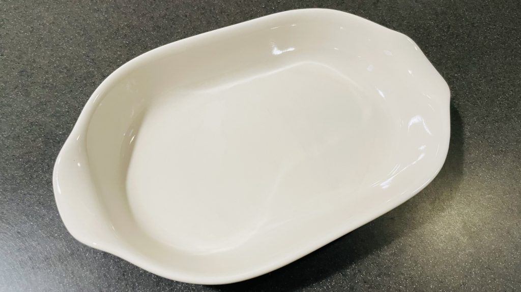 以下のような、長方形のグラタン皿を使いました。