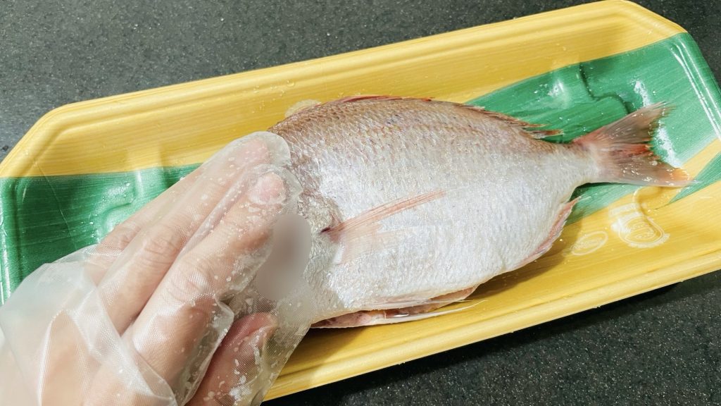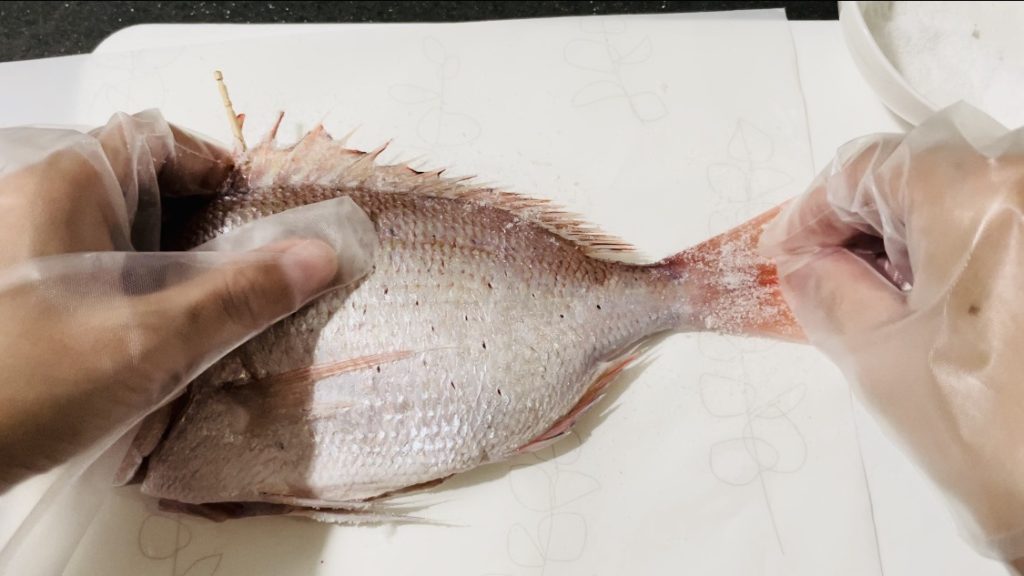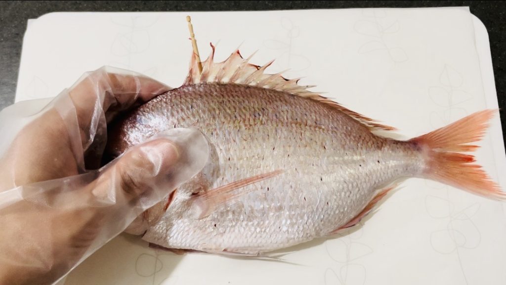今回焼いた鯛は、手のひらより少し大きいサイズのものです。